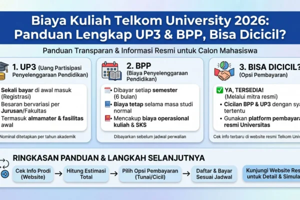 Bagi calon mahasiswa yang ingin menempuh pendidikan tinggi di bidang teknologi, komunikasi, dan informatika, mengetahui informasi mengenai biaya kuliah Universitas Telkom Bandung TA 2025/2026 sangat penting. Dengan rincian biaya kuliah yang jelas, calon mahasiswa dan orang tua dapat merencanakan anggaran pendidikan secara matang sebelum mendaftar. Biaya Kuliah Universitas Telkom Bandung TA 2025/2026 Universitas Telkom Bandung…